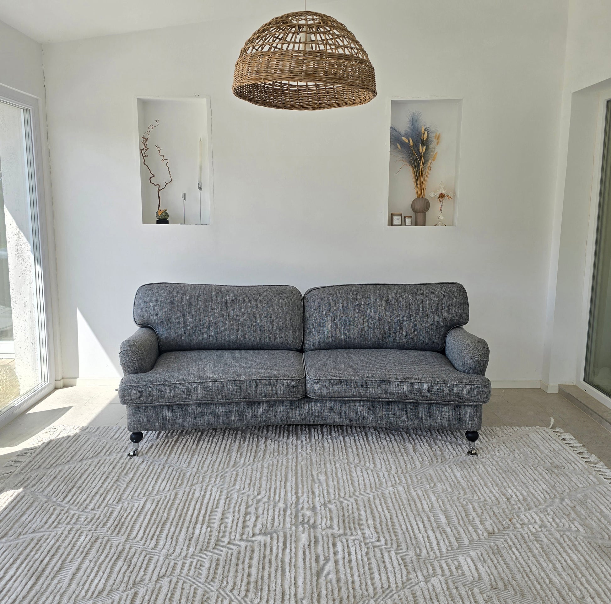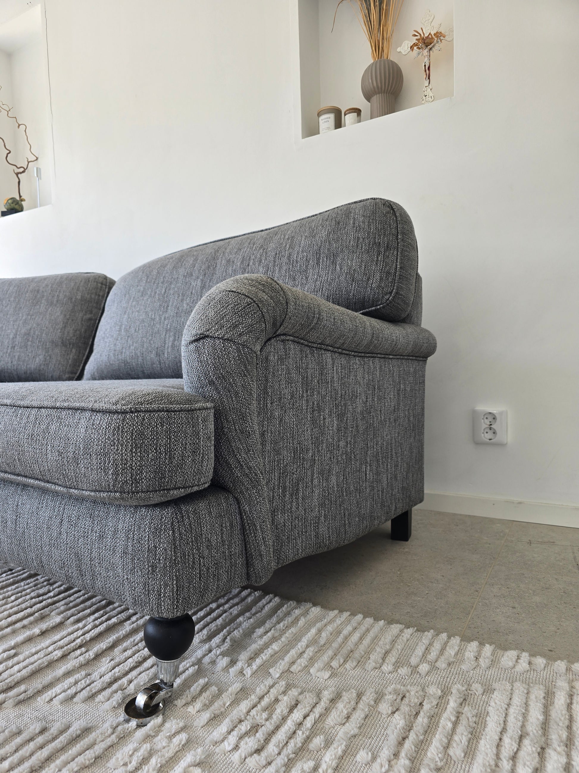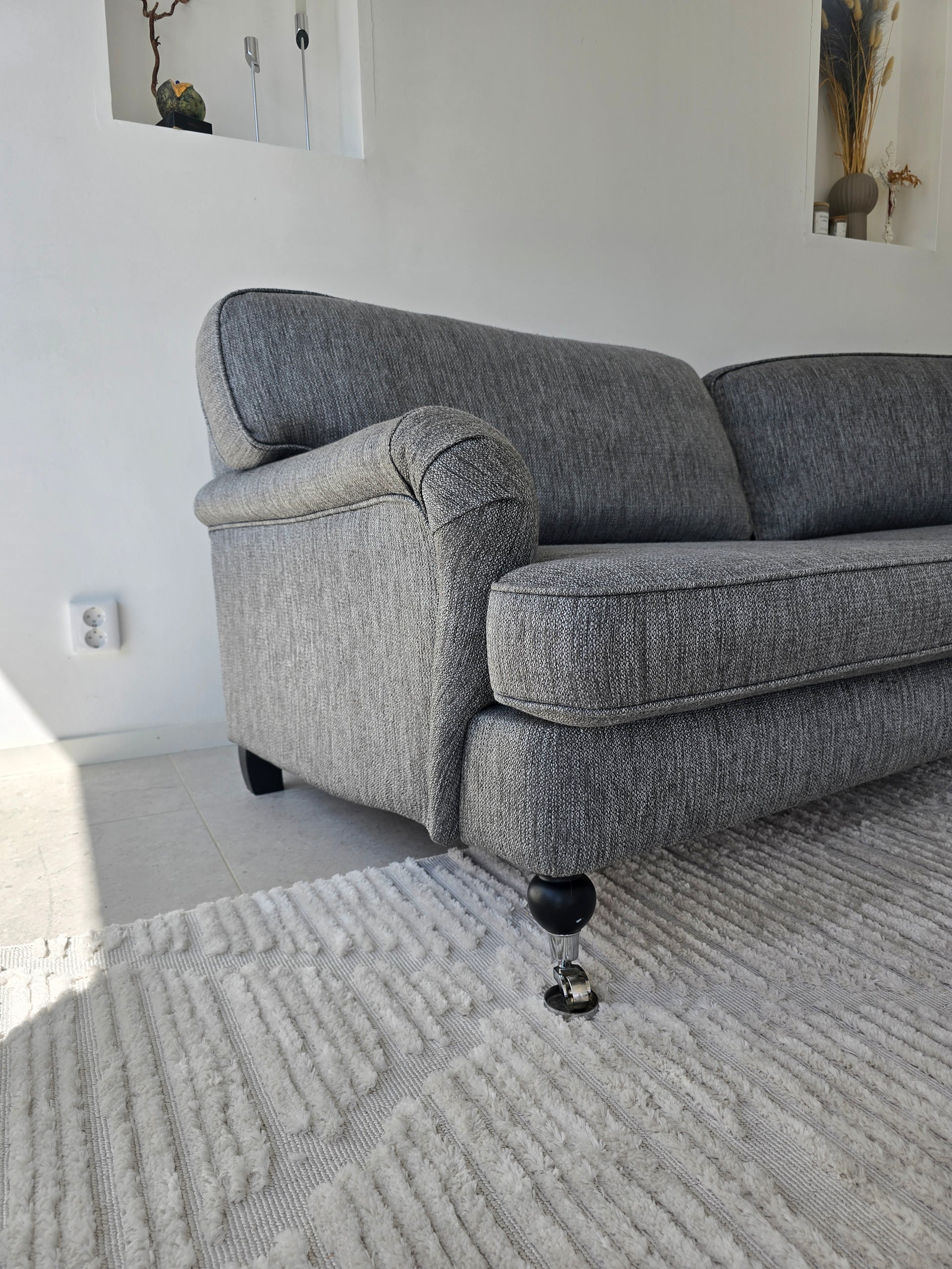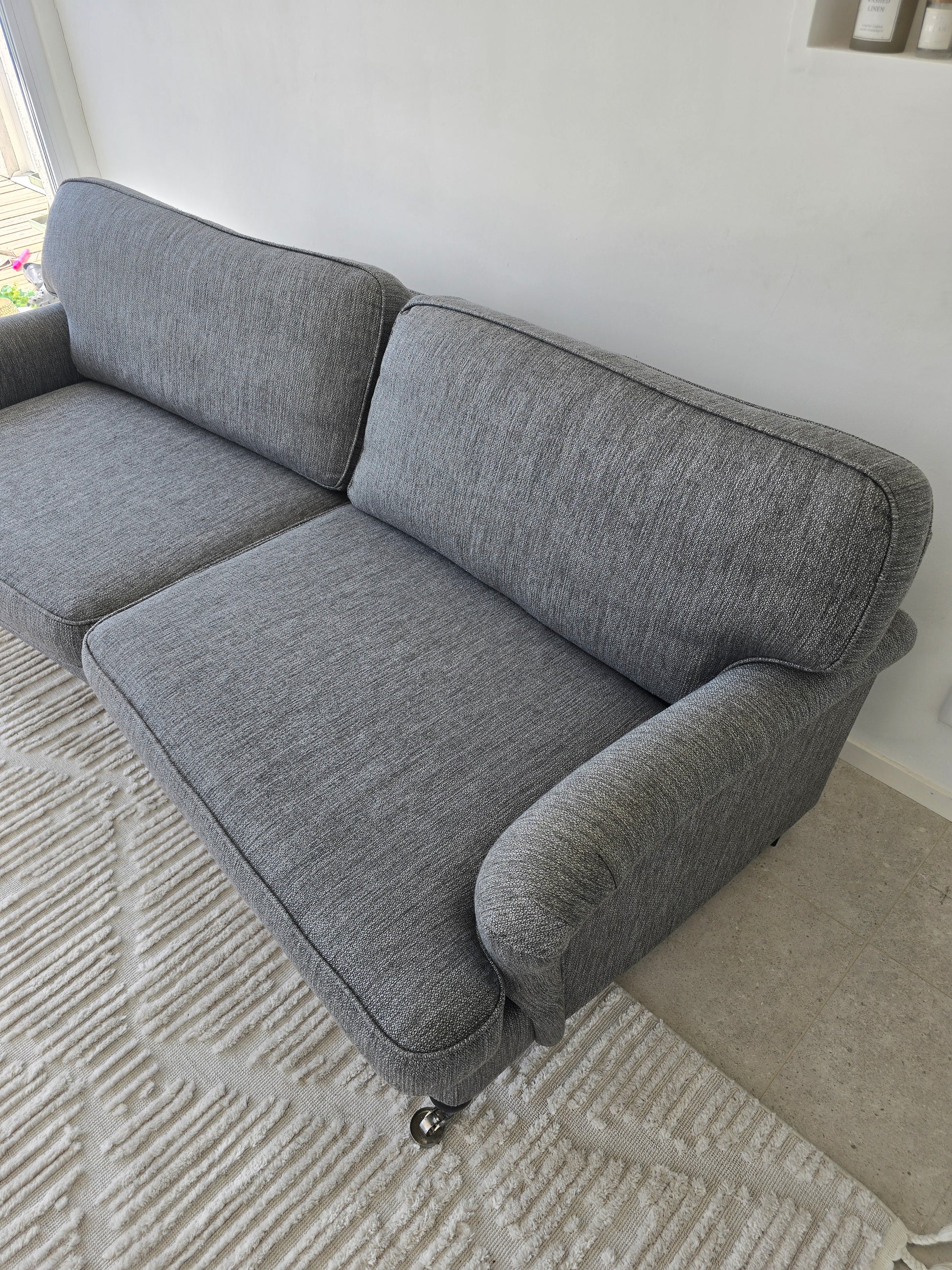 Sofforna är professionellt ång- och textiltvättad inför försäljning - alla överdrag, inklusive stomme, har rengjorts för att vara ren och fräsch.