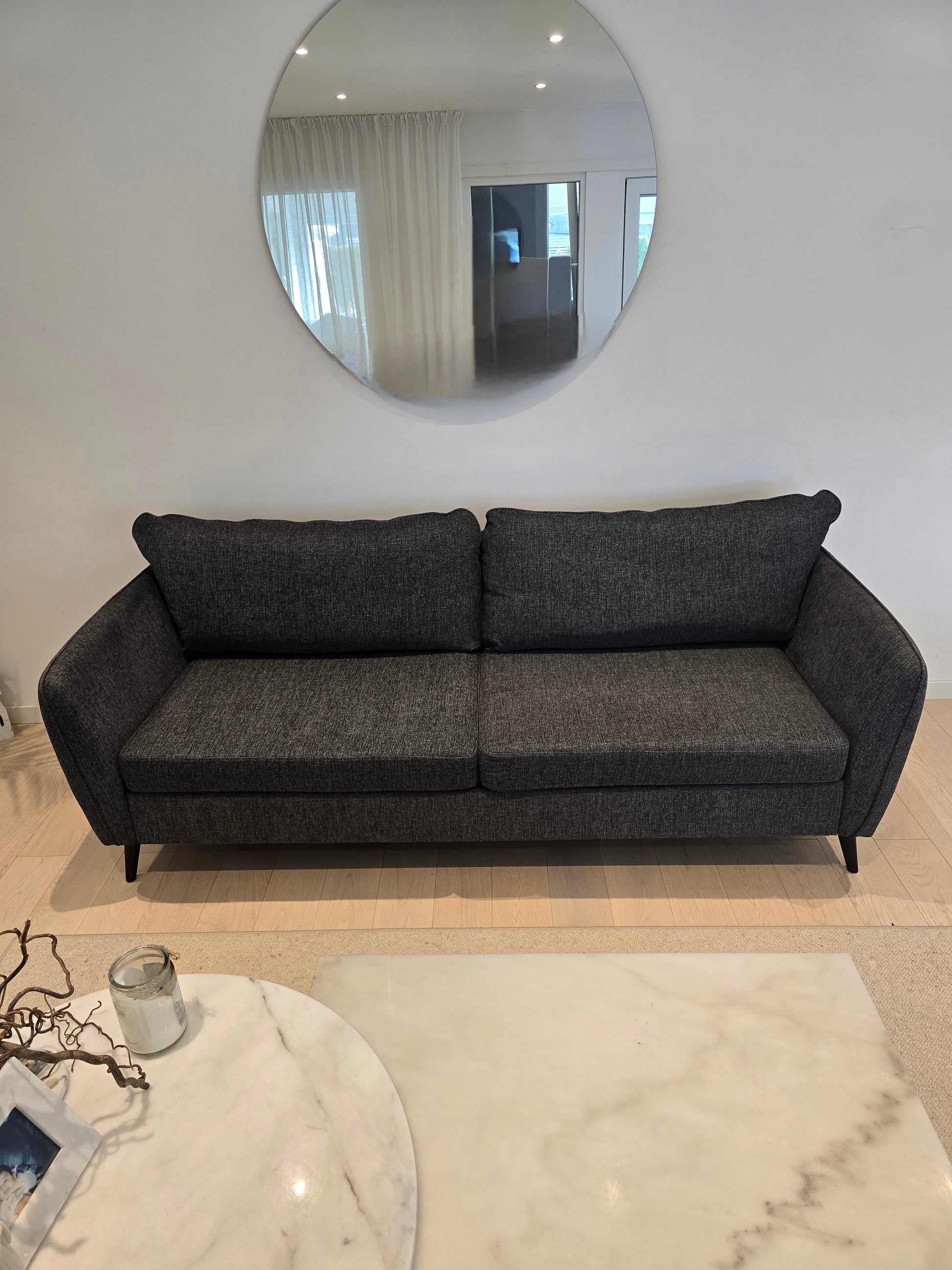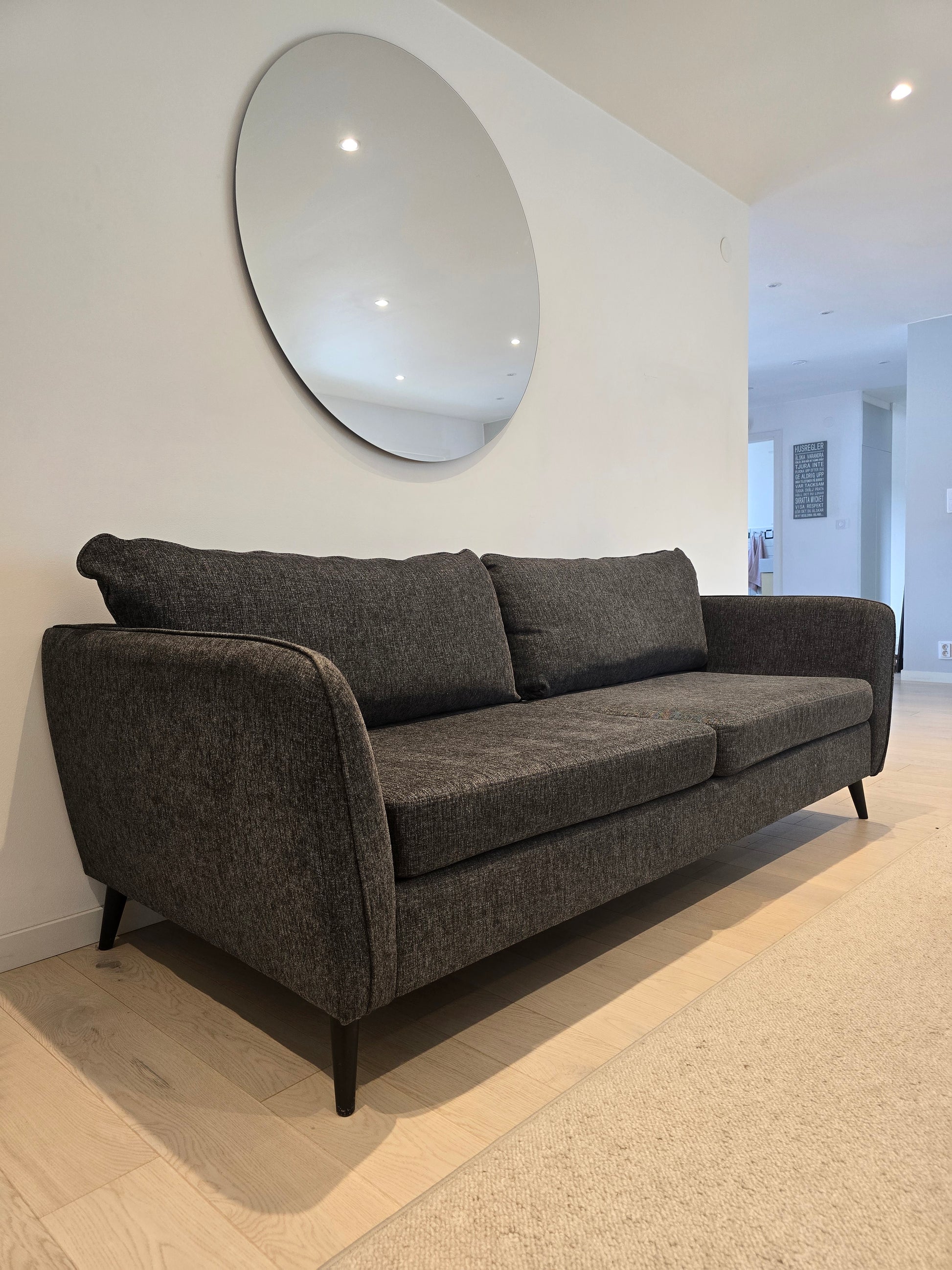 Soffan är professionellt ång- och textiltvättad inför försäljning – alla överdrag, inklusive stomme, har rengjorts för att vara ren och fräsch.